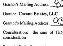 The Grantee on a Warranty Deed for a property in Polk County is listed as an LLC. Coconu is the maiden name of Rob Freyer's main financial supporter and wife.