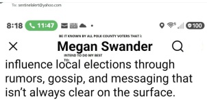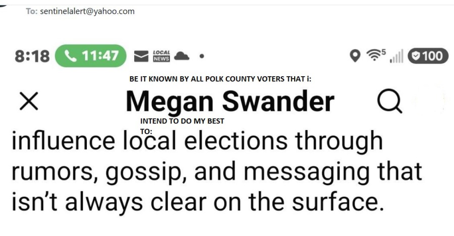 The recent Polk Co Republican Club meeting was of great interest to observers. The 'out of nowhere' candidate, Pfeil was noticably seperated from any appearance of supporters. Personal reports submitted to The Sentinel and a social media camera pan of the event agreed that Pfeil was mostly alone. The formerly ardent supporter of Pfeil, the fired Shoellhorn and the loser Freyer, Evans got there just before the meeting started and did not set with Pfeil.