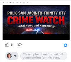 Nathan Deweese, a San Jacinto County sheriff deputy has been charged out of Trinity County for either an harassment or staking charge. We are trying to clarify what the exact charge is.