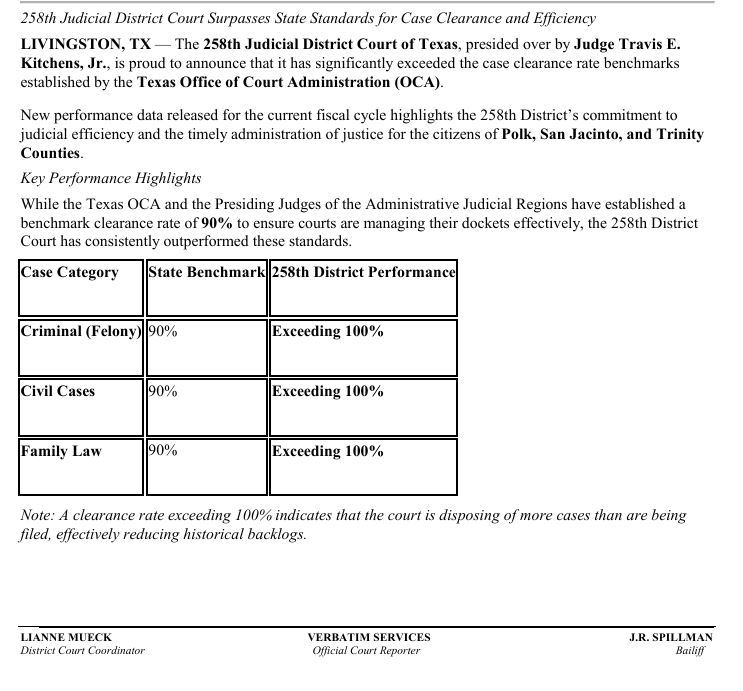 Under the leadership of Judge Kitchens, the court continues to prioritize transparency, efficiency, and the rule of law.