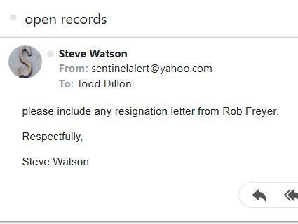 SJC DA, Todd Dillon has ignored a plain and simple open records request. When I requested the payroll records for the last couple of months, I requested them from the DA, Treasurer and Auditor. Both the Treasurer and Auditor delivered promptly. Dillon has totally ignored the request. As a point of clarification, I followed up with the snip at left to make sure Todd Dillon understood that I wanted freyers resignation letter also. Crickets.