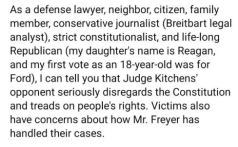 Freyer keeps calling The Hornorable 258th District Court Judge, Travis Kitchens, a RINO when Judge Kitchens has run as a Republican from day one in his service to our community.
