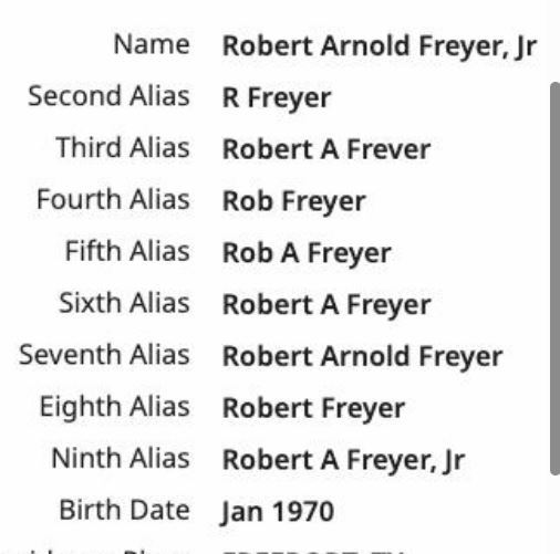 Are you an interested voter who only wants the best candidate to be elected attempting to figure out who this all over the place mouthy 258th District Judge candidate ROBber Freyer is and confused with what you find? Let us help. Expert research associates of The Sentinel Alert have narrowed mouth of the south down to NINE known alias' plus our two. Robber Freyer for stealing taxpayer money and Agg Rob Freyer, his pet name by the fellow ADA's in the Harris Co DA's office.