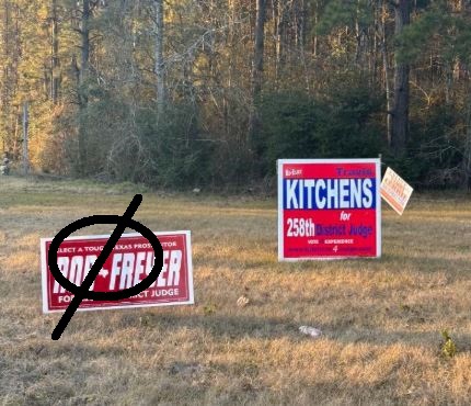 Any voter in the 258th can see freyer's 'finger' in your face anytime you drive down the state hiway R.O.W.'s in the three county areas. Even after publication of his crime, TxDot removing his illegal signs, fingerling freyer flips you off every time you drive by one of his signs. "F YOU, RULES FOR THEE BUT NOT FOR ME" is the sign language he displays with his own brand of 'sign language.'