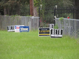 In a pattern that was repeated at nearly every spot they were displayed, Beto, Brown and Lemond signs were illegally placed on Hwy R.O.W. with the law printed right on the sign they are using to violate that law with. All of these men are want to be lawmakers and judge that blatantly violate 'the little laws'. It isn't rocket science.