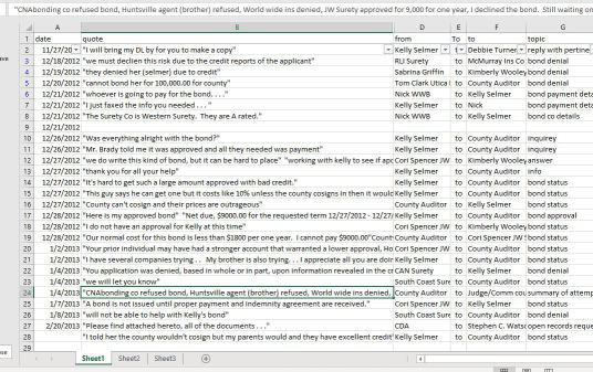 The bond co secretary was quite cordial and helpful until I asked her to check her inbox for April 25th. She was agreeable to do that too and then thirty seconds later, she came back with an adversarial tone saying, "I can't give you any more information, you will have to call back and talk to XXXXX.