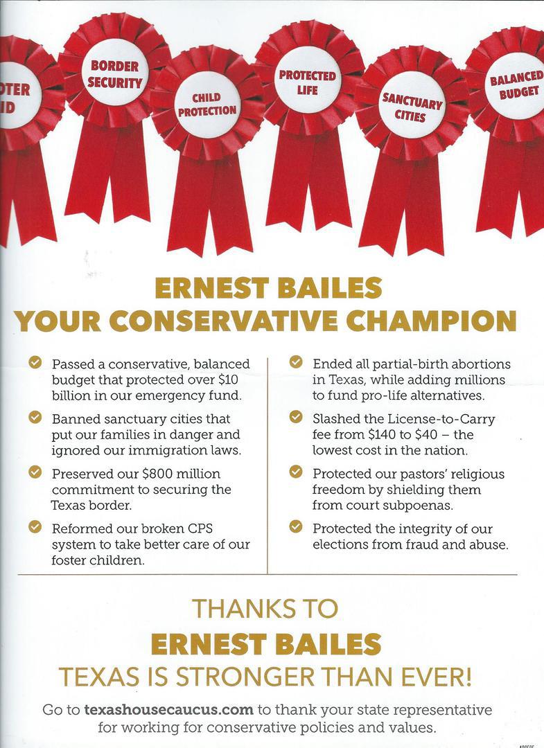 TEXAS HOUSE REPUBLICAN CAUCUS PAC ENDORSES ERNEST BAILES