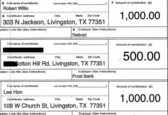 The other large donor is former Pct 1 Polk Co commissioner, Bob Willis.