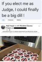 How fitting that freyer takes beautiful fresh garden grown cucumbers, rots them awhile till the fermentation (picture of sin in the bible) is complete and then peddles them and uses the proceeds to bribe non profits for support in violation of law while he runs for judge. Our reader did catch the freyer crew leaving the campaign's pickle peddle place this morning and sent us a picture.