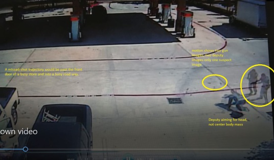 When this video was submitted to The Sentinel, he did not offer any comment or observations but just requested that we review the footage. I reviewed it my self first. Then I asked another journalist to review it without offering my comments. Then I requested a long time elected lawman who has deputies under him to review the footage. This is the point where that lawman raised his first objection noting that the deputy is aiming at the head, not center body mass as ALL LEO training teaches.