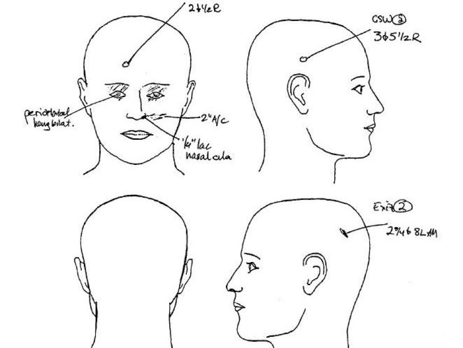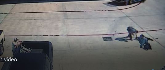This view is right when the second shot was fired striking the suspect in the right temple through his helmet. This is where the highly respected and experienced lawman noted, "I won't second guess the first shot because I am not in his shoes but the second shot after the man is down and no longer a threat violates ALL LEO Training".