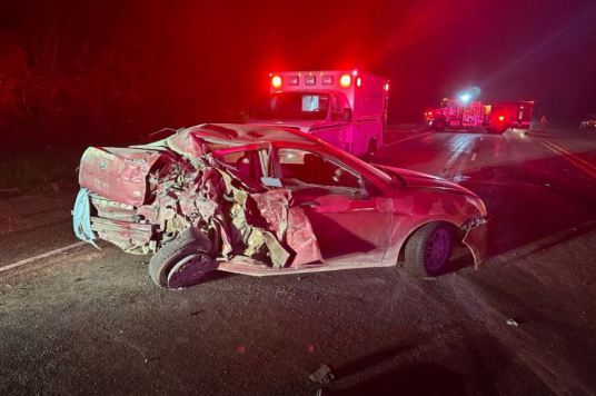 The Good Lord spared two young men in this car headed to work this morning. Stopping to turn left into Hunters Hill when a truck plowed into them at hiway speed.