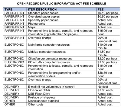At left is the cost schedule for copies put out by the Texas OAG. After requesting records from the SJC District Clerk and waiting since Oct 6th, well past the ten days, I finally got this cost estimate from her: