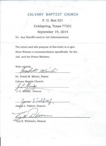 It is a calling on my life that my church recognized way back in 2014. Let me post that document for you too. To me the best prison and jail ministry is to keep the innocent from going there on FALSE charges. Especially me.