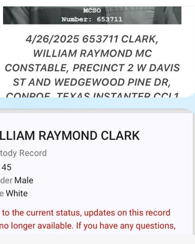 Most have read the story on MCPR about DPS Trooper, Bill Clark being arrested for DUI in Montgomery Co. To The Sentinel, the real story is what is written in red on the attached vinelink..com posting about the arrest. Joe six pack gets arrested, booked and listed on the Vine link web site, and his business is on display all the way through with court dates and results constantly updated. There are arrest listings up and updated for years on the common folk but in less than two days, Trooper Clark's updating info is scrubbed from the website. As stated, it is the agency who has stopped providing the information and says "come ask".