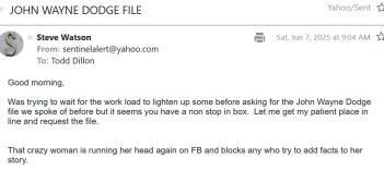 Even though I was assured that I could have the file after legally required redactions were made since, "The case is closed" according to SJC DA, Todd Dillon, we have not even received a single page of the file or a cost estimate within the 10 day limit. I did tell DA Dillon that I would not press him on the ten day limit appreciating his work load but damn.